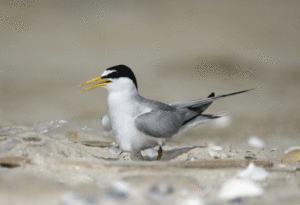 Caption: Least Tern with egg. Photo credit: Mike WilliamsNow that the weather is warmer, our researchers here at Gulf Coast Bird Observatory have begun another season of our Beach-nesting Birds monitoring project. Wilson’s Plovers and Least Terns are nesting on the beaches of the Upper Texas Coast, and it is our research team’s job to find them, monitor them, and teach the public how to protect them.